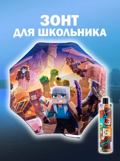 Зонт автомат детский с принтом Майнкрафт Стив и Алекс