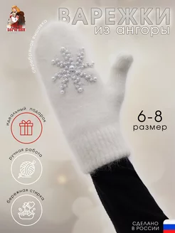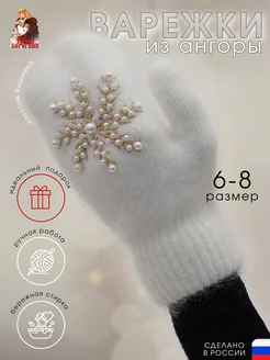 Варежки из ангоры с ручной вышивкой "Серебряная снежинка"