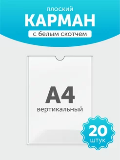 Карман А4 для стендов, самоклеящийся, вертикальный, 20 шт