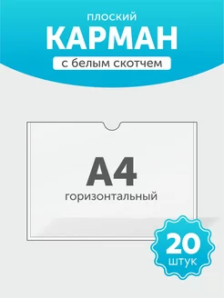 Карман А4 для стендов, самоклеящийся, горизонтальный, 20 шт