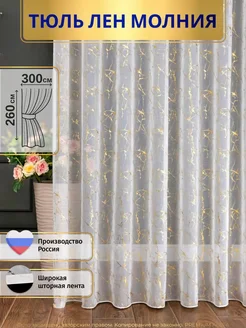 Тюль под лен Молния 300х260 в гостиную спальню золото