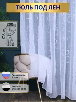 Тюль под лен 300х250 в гостиную и спальню с рисунком кольца