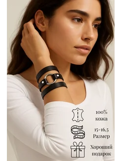 Браслет кожаный на руку с металлическим кольцом