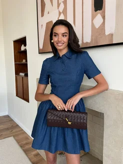 Джинсовое платье поло летнее мини с воланами
