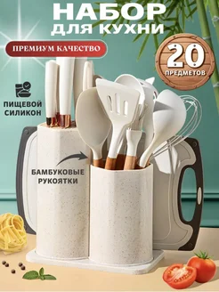 Набор кухонных принадлежностей 20 штук из силикона и бамбука