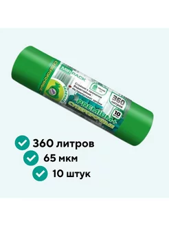 Мешки для мусора 360 литров, 65мкм, 10 шт