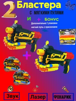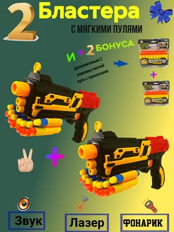 2 Пистолет Бластер с мягкими пулями и лазером