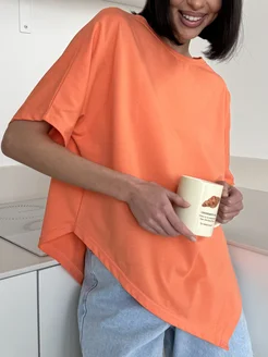 Футболка оверсайз однотонная из хлопка, удлиненная