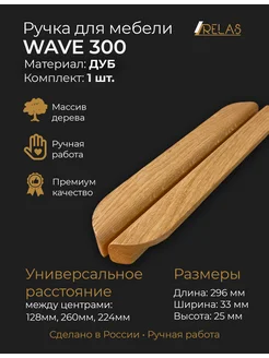 Ручка мебельная WAVE 300, из дерева, массив дуба