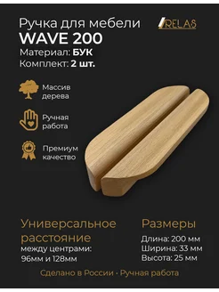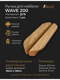 Ручка мебельная WAVE 200 из дерева для кухни шкафа тумбочки