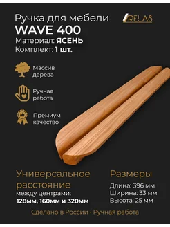 Ручка мебельная WAVE 400 из дерева для кухни шкафа тумбочки
