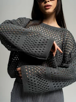 Кроп-топ майка вязаная укороченная вечерняя под пиджак
