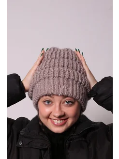 Шапка двухслойная, обьемная( козий пух, мохер)