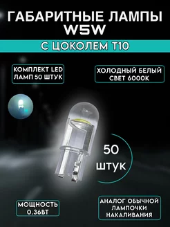 Габаритные лампы W5W с цоколем T10 50 штук