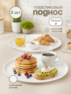 Поднос пластиковый круглый 35 см блюдо сервировочное 2 шт