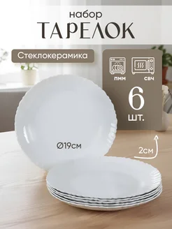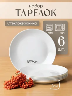 Тарелки набор 6 шт плоские стеклокерамика белые d = 190 мм
