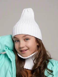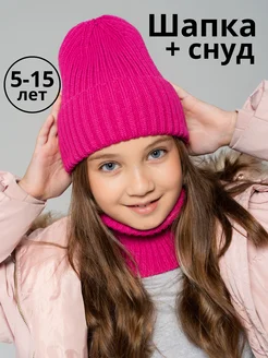 Шапка и снуд осенняя детская комплект бини в рубчик