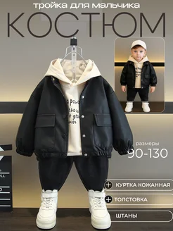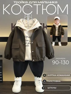 Костюм тройка детский с кожаной курткой и брюками,оверсайз