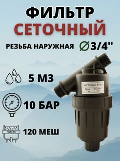 Фильтр для систем полива сеточный, 120 меш, нар. резьба 3 4