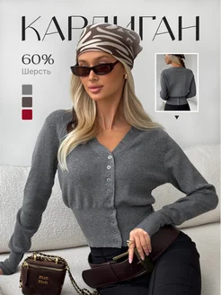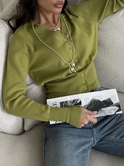 Кардиган укороченный на пуговицах с длинным рукавом