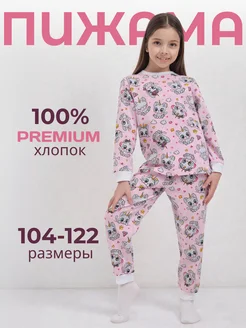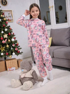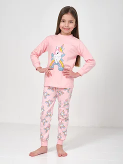 Пижама детская со штанами и длинным рукавом с единорожкой