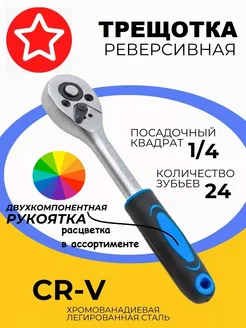 Трещотка реверсивная 155 мм, посадочный квадрат 1 4"