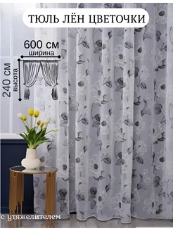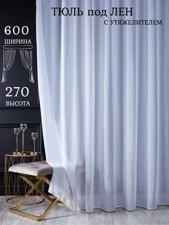 Тюль под лен с утяжелителем для гостиной и кухни 600x240 см