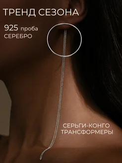 Серьги серебро 925 кольца гвоздики конго длинные с цепочкой