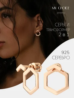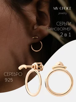 Серьги серебро трансформеры гвоздики с позолотой 585