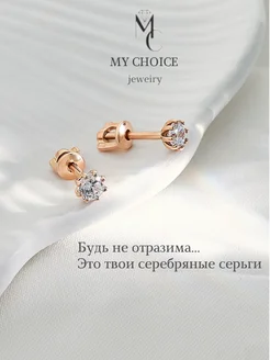 Серьги серебро 925 пусеты с камнями гвоздики ювелирные