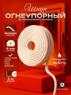 Шнур керамический 6 мм, огнеупорный, 2 м для печей