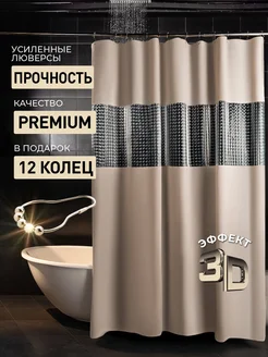 Штора для ванной 180х200 водонепроницаемая на кольцах