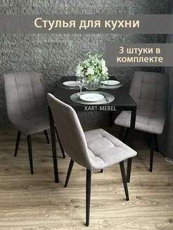 Стулья для кухни 3 штуки со спинкой мягкие велюровые