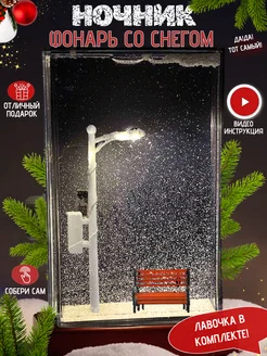 Ночник фонарь со снегом и лавочкой