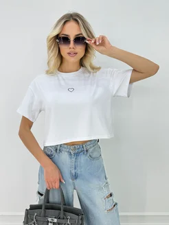 Футболка укороченная оверсайз кроп топ с сердечком