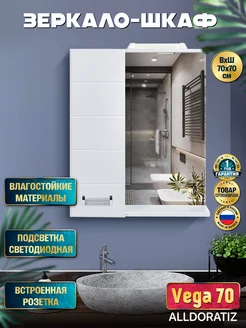 Шкаф зеркало с подсветкой Vega 70 левый, А00МДШ273