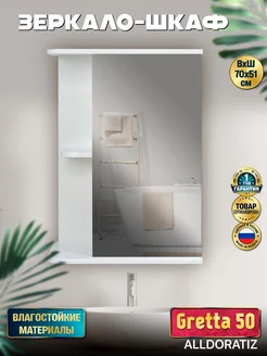 Настенный шкаф зеркало с подсветкой полкой для ванной 70
