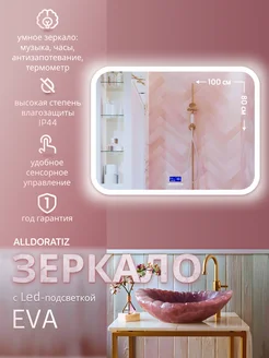 Зеркало с подсветкой подогревом и модулем МФМ 100х80 EVA