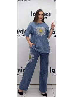 Cпортивный костюм двойка больших размеров со стразами нарядн