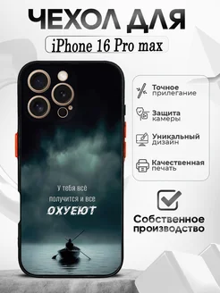 Чехол на iPhone 16 Pro Max черный с надписью