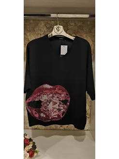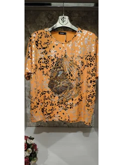 Футболка больших размеров со стразами нарядная