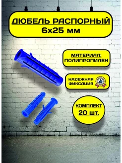 Дюбель распорный 6х25 (20 шт), пластиковый, с усами, шипами