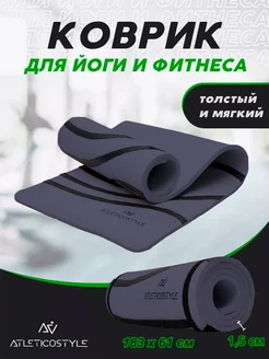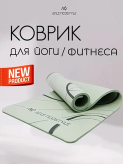Коврик для йоги и фитнеса нескользящий универсальный широкий