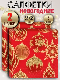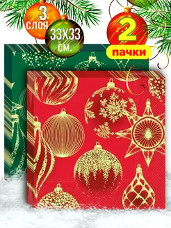 Салфетки бумажные праздничные Новогодние Шарики 33*33