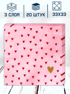 Салфетки сервировочные бумажные Сердечки, 3 слоя