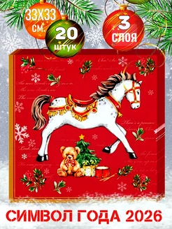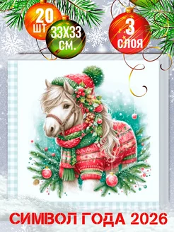 Бумажные салфетки новогодние для декупажа Символ Года Лошадь