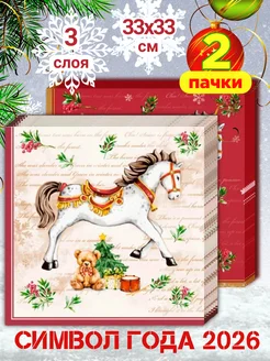 Салфетки бумажные новогодние Лошадь Символ Года 2026