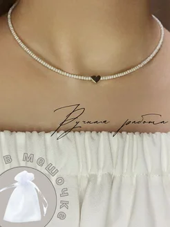 Чокер белый из чешского бисера с сердечком