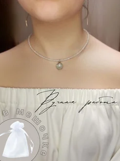 Чокер белый ракушка с жемчугом
