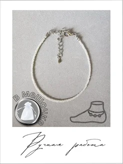 Браслет (анклет) на ногу из бисера белый жемчужный перламутр